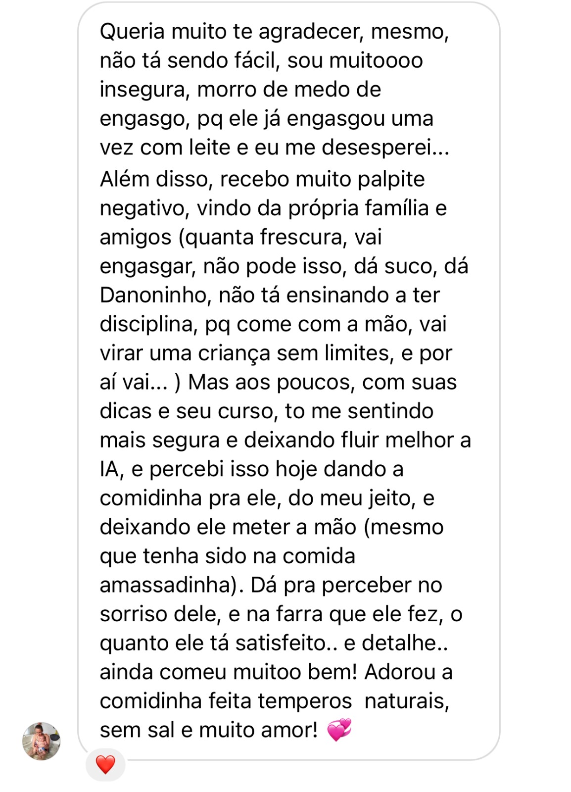 Eu confio tanto no Método Nutri Bebê que eu tiro esse peso das suas costas.